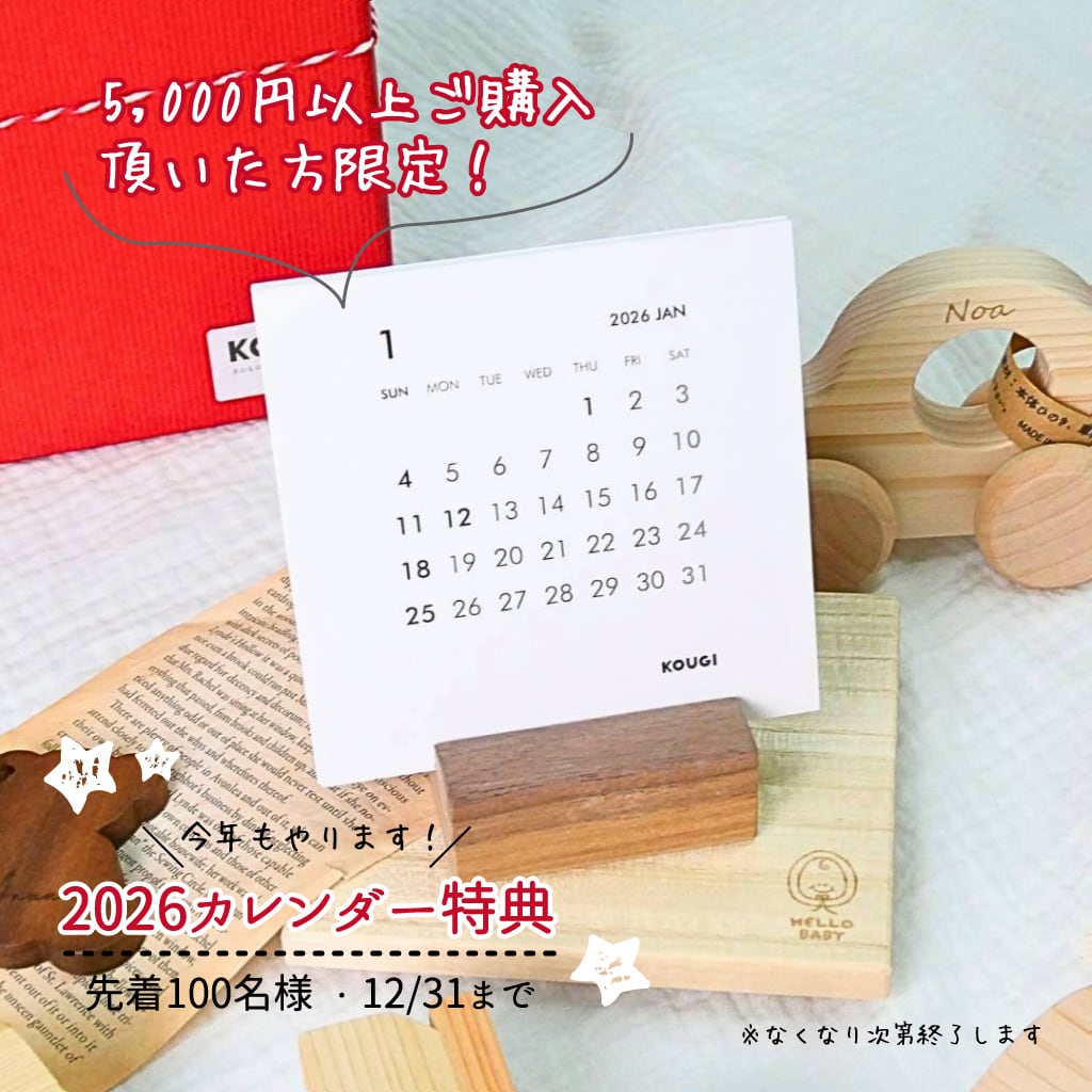 2026年1月はじまりのKOUGIオリジナル卓上カレンダーです。