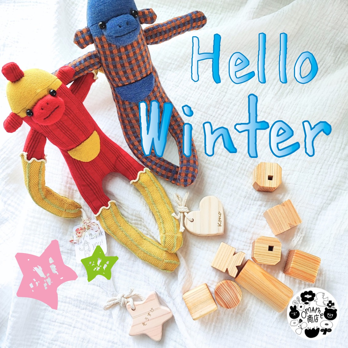 リリースから着実にファンを増やしているソックモンキーと積み木のセットですが、冬色のカラーバリエーションリニューアルしましたのでお知らせいたします。