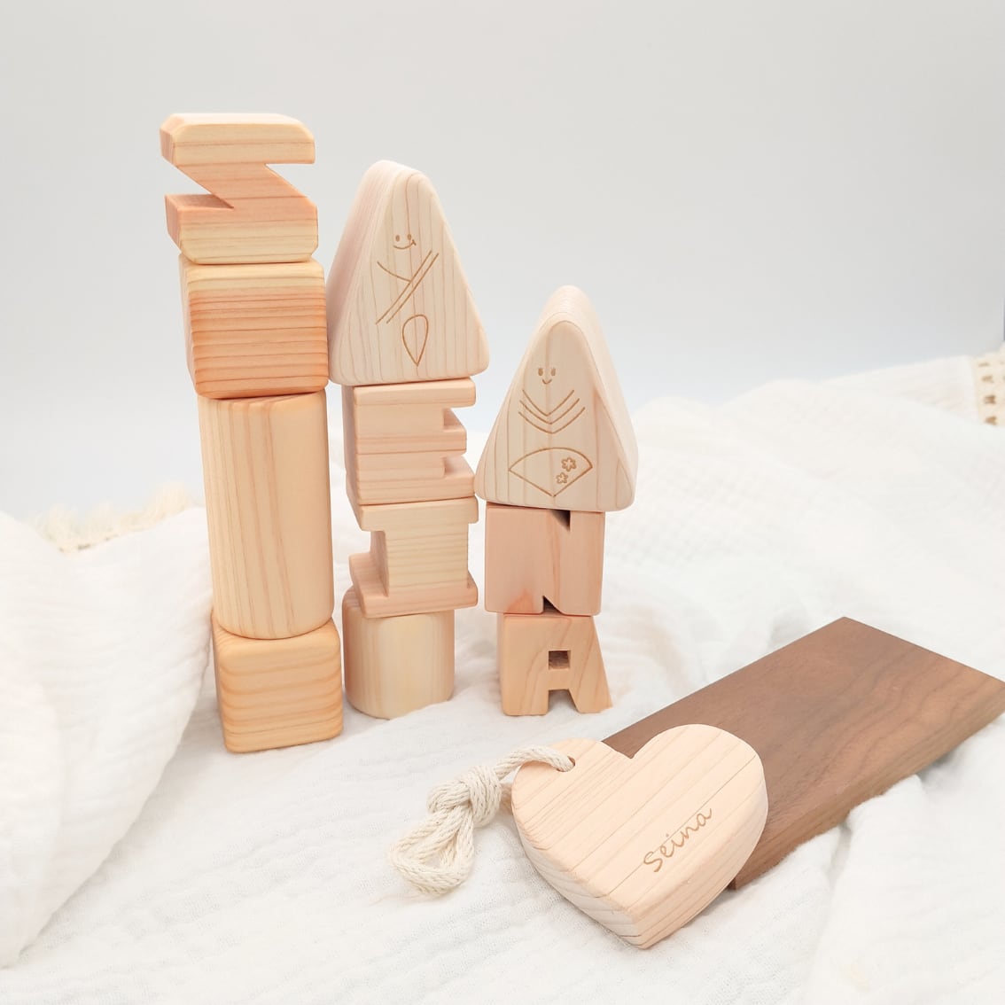 39セット、ファーストトイセット→8文字まで、Sサイズ→10文字まで、Mサイズ→12文字まで、Lサイズ・開店祝い積み木→16文字まで。※「はじめて積み木」等、ご購入時に文字数を選んだ商品の場合はその文字数に沿ってください。
