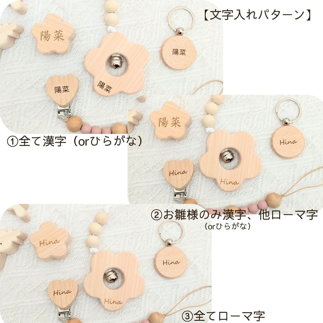 ④おしゃぶりホルダー 全長170mm×ハート35mm×35mm /ブナ・シリコン