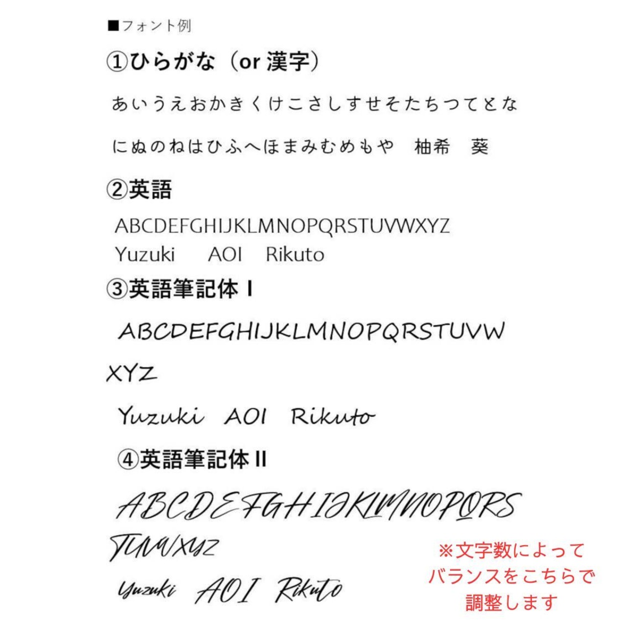 名入れの文字をご入力ください。例:AOI、はると、Yuki、春奈 etc...(名入れご不要の方は『なし』とご入力ください。)
