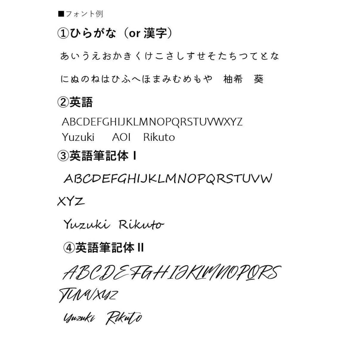 名入れの文字をご入力ください。例:AOI、はると、Yuki、春奈 etc...(名入れご不要の方は『なし』とご入力ください。)