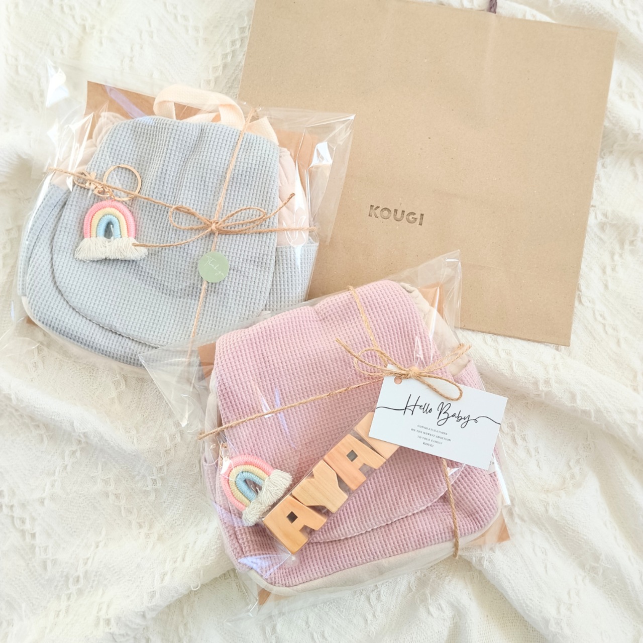B:ライトブルー×虹チャーム(ワッフル生地)
