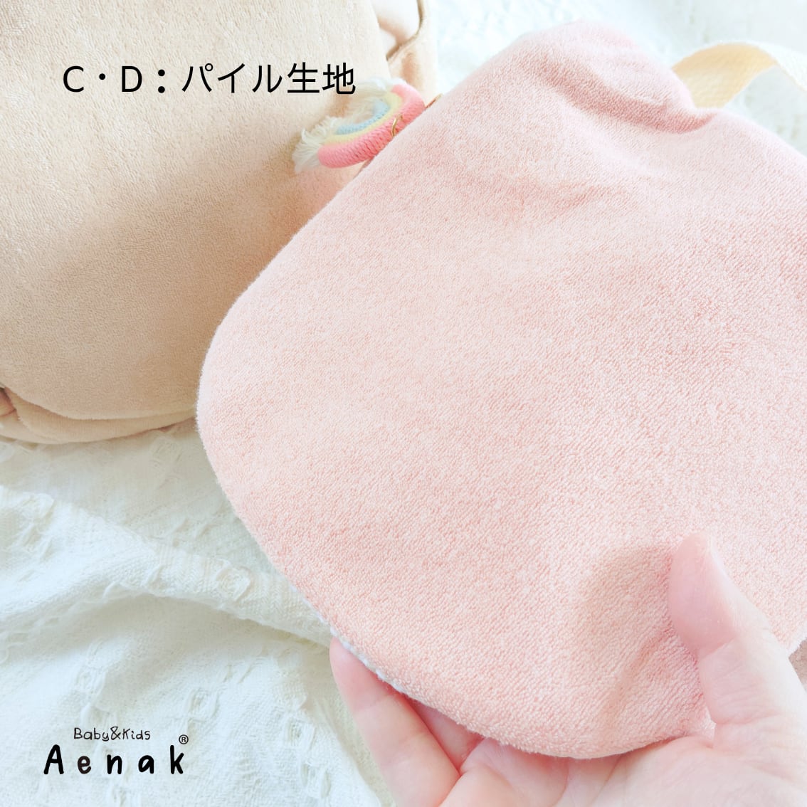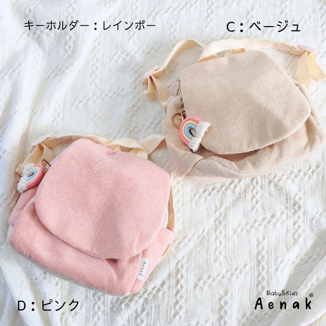 C:ベージュ×虹チャーム(パイル生地)