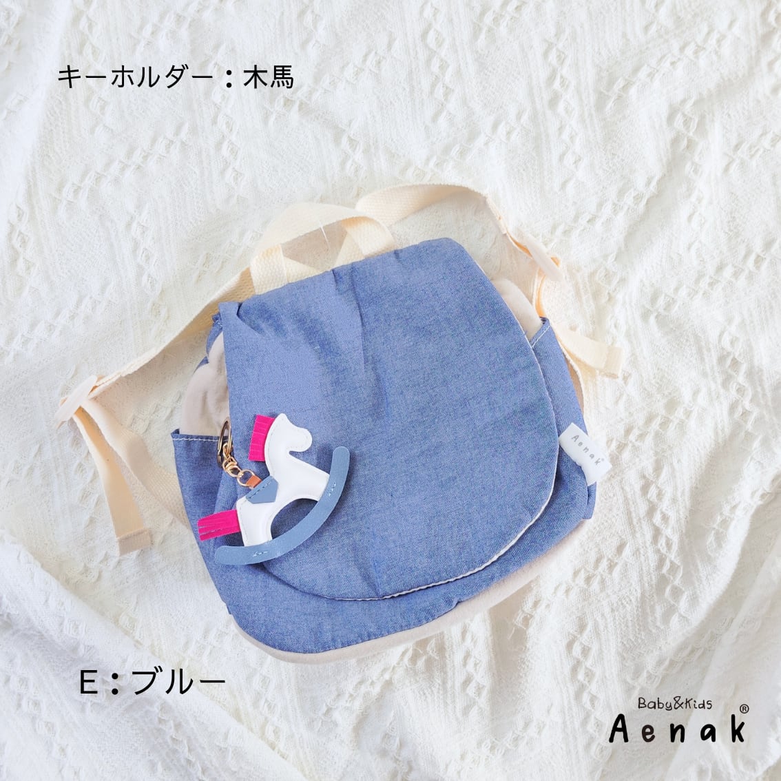 E:ブルー×木馬チャーム(ダンガリー生地)