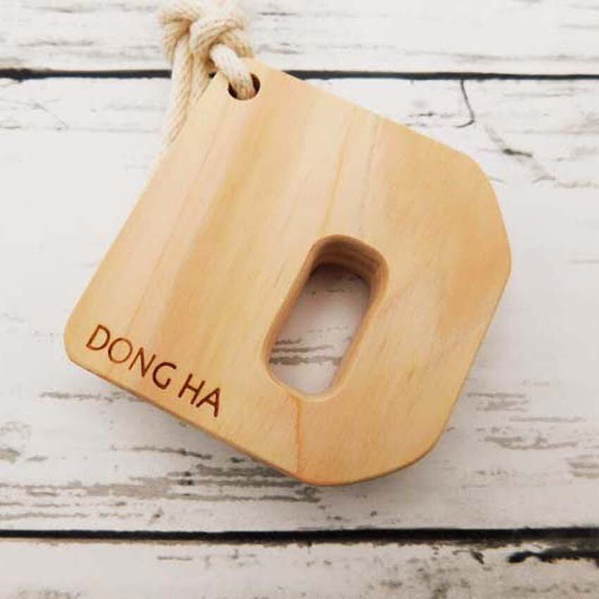 ローマ字の歯がためを使い、表面にはレーザー彫刻にてご希望のお名前をお入れします
