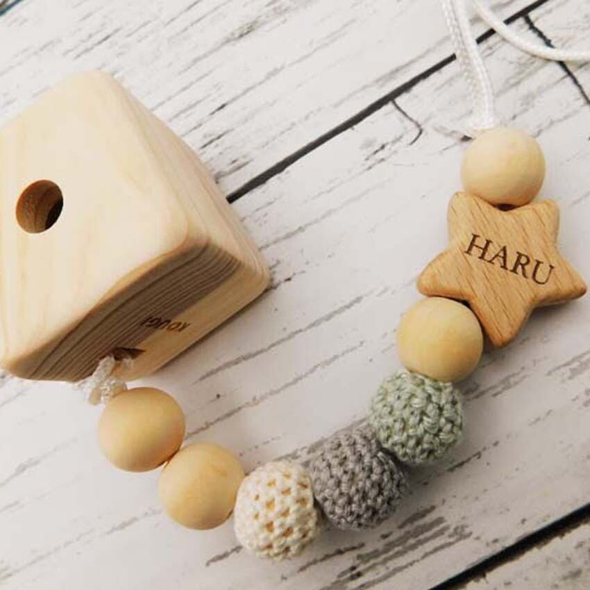 材料:積み木→国産ヒノキ  ヒモ→綿