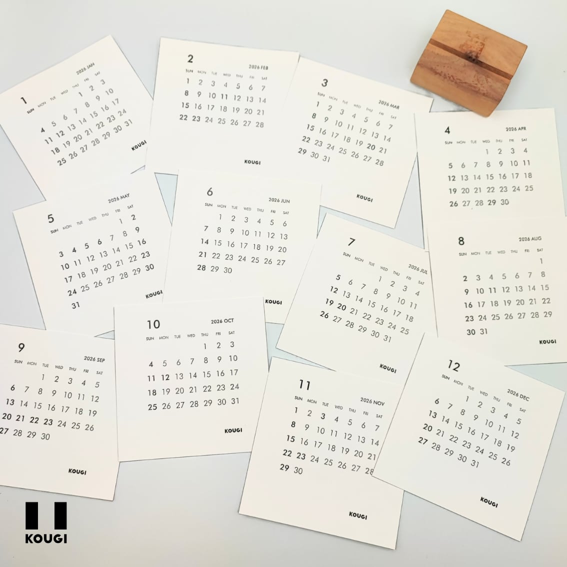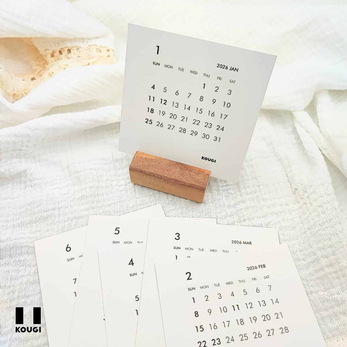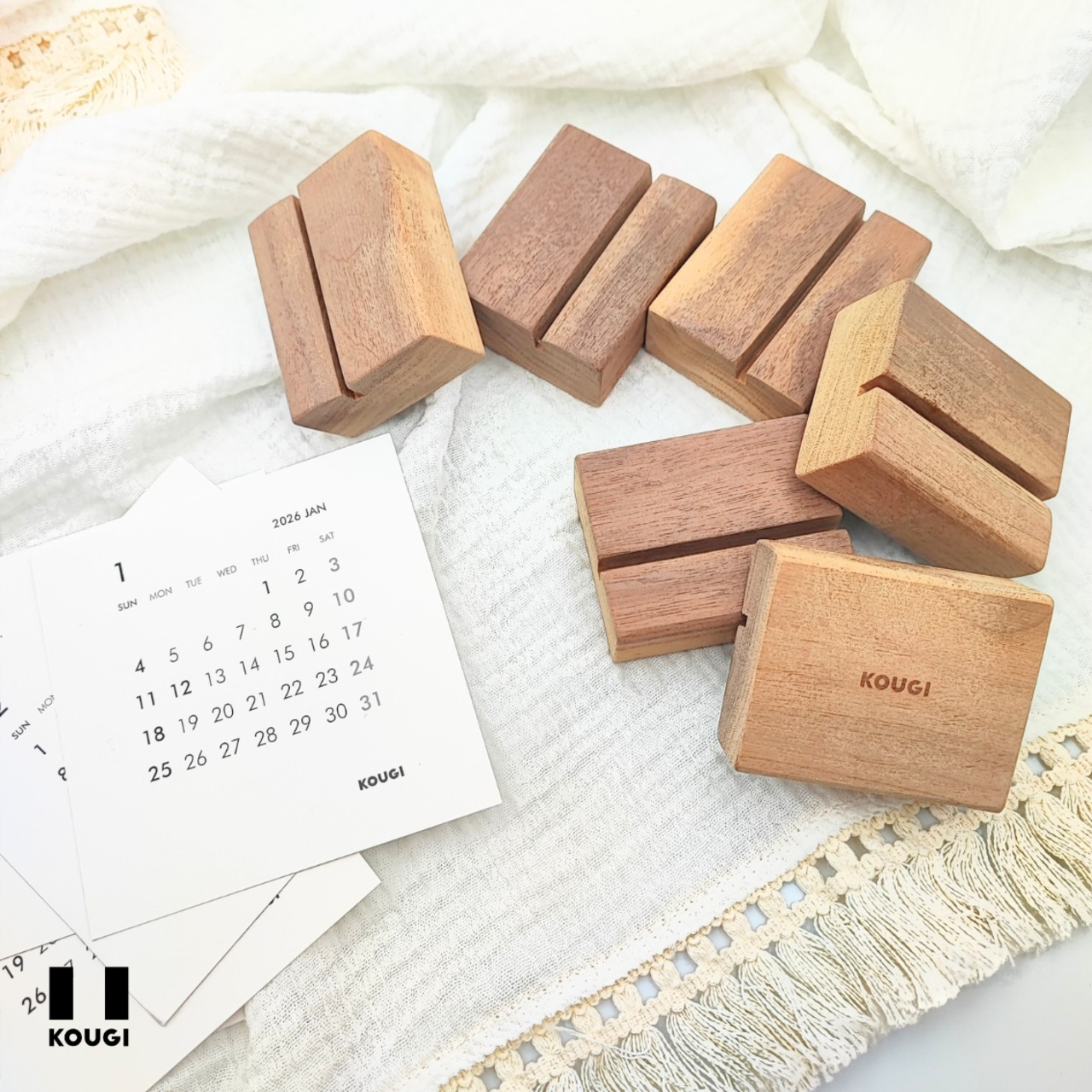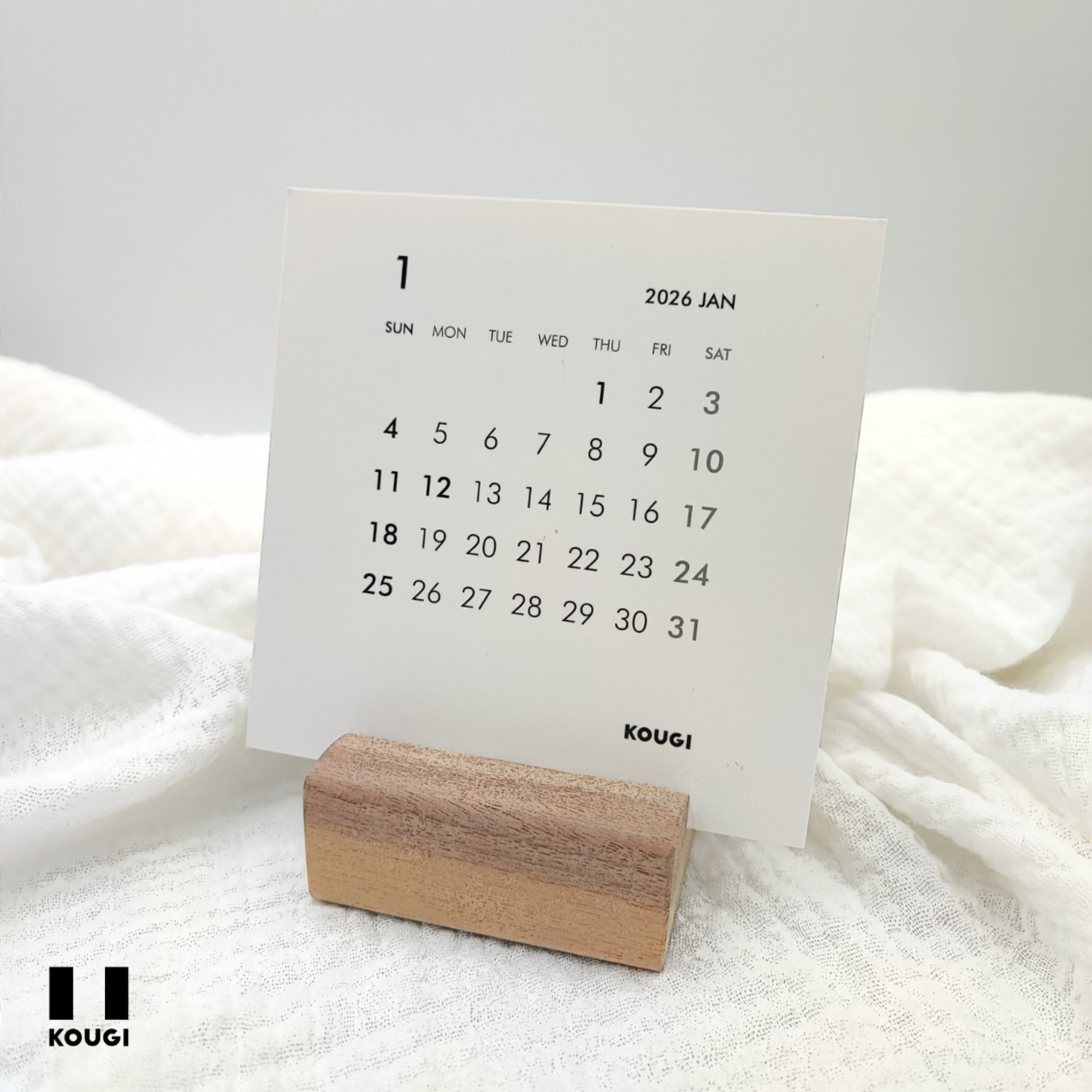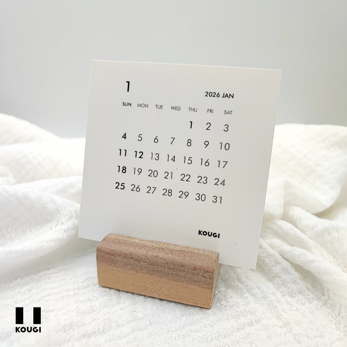 【カレンダー】2026年 卓上カレンダー✴ウォルナットの白木台座(名入れ・ロゴ入れ可)
